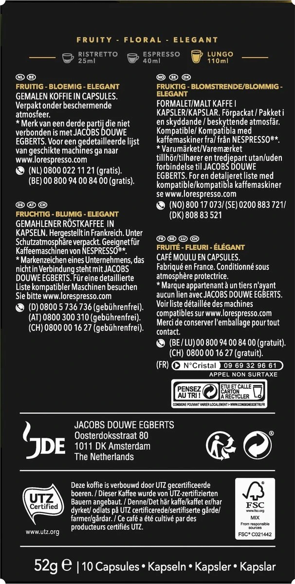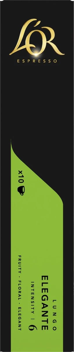 Ontdek het delicate karakter van Lungo Elegante. Een fruitige, bloemige koffiemelange waarin noten van citrusvrucht en zwarte bes het middelpunt vormen en voor een licht gouden crèmelaag zorgt.